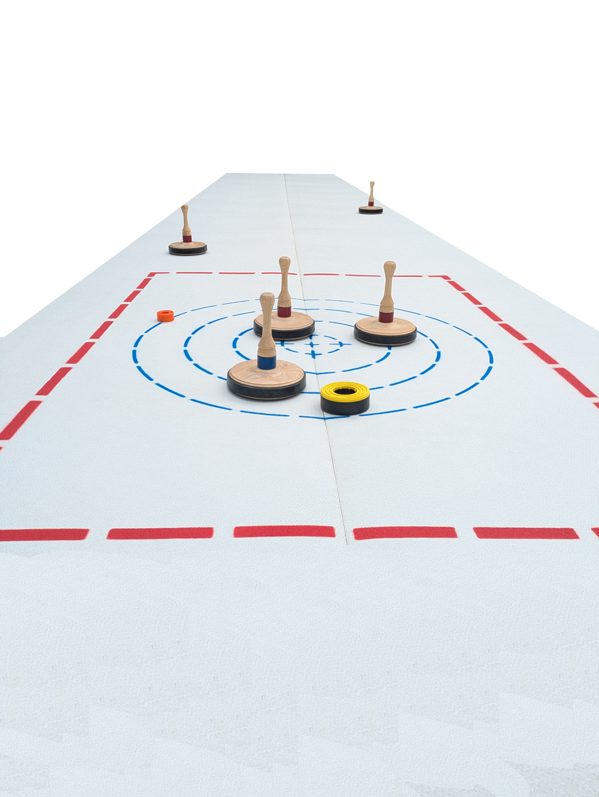 Unsere mobile Eisstockbahn ist flexibel und kann sowohl draußen als auch drinnen aufgebaut werden. Alles, was Sie benötigen, ist eine ebene Fläche von 10×2 Metern, frei von Hindernissen. Unsere Bahn bringt nicht nur Winterzauber zu Ihrer Veranstaltung, sondern ist auch durch ein spezielles Lattl-Gestell erweiterbar. Fordern Sie Ihre Freunde oder Kollegen heraus, indem Sie die verschiedenen Punkteklappen mit den Eisstöcken treffen – ein garantierter Spaß für Groß und Klein!