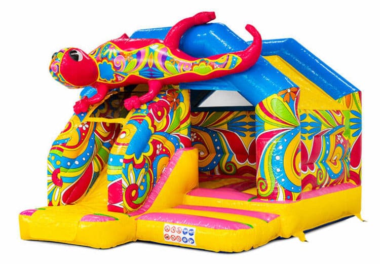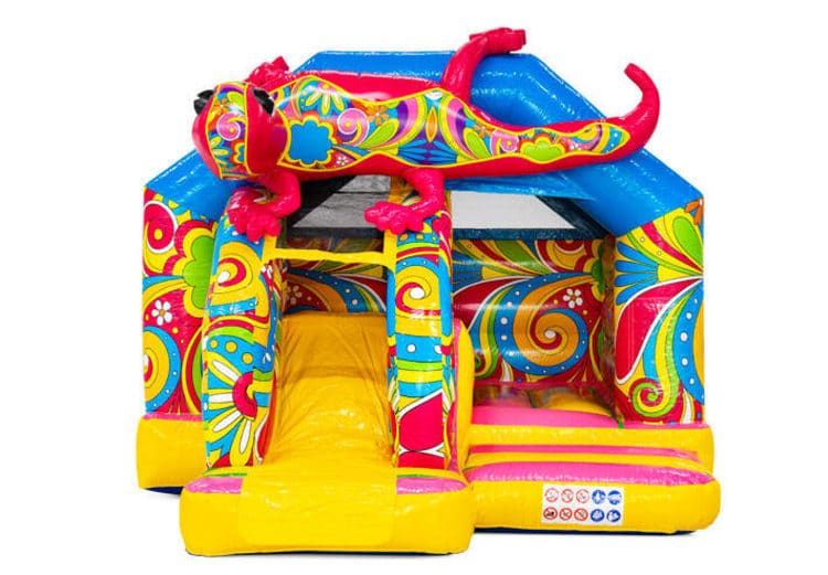Springt in ein tropisches Paradies 🌴 mit unserer Slide Combo Paradise Island Hüpfburg! 🌈 Dieses farbenfrohe Wunderland lädt kleine Abenteurer dazu ein, hoch hinaus zu springen und die Freude des Sommers zu erleben. 🐉 Mit unserem freundlichen Chamäleon, das von der Spitze grüßt, und den strahlenden Mustern, die Geschichten von fernen Ländern erzählen, ist Spaß für alle kleinen Entdecker garantiert.